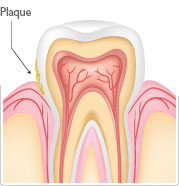 Over time, a film (plaque) builds up on your teeth. A major cause of tooth decay, plaque is a sticky substance made of bacteria, mucus, and food on the exposed parts of your teeth. Over time, plaque can harden and become trapped at the base of the tooth.